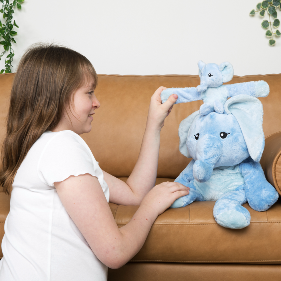 Hug Baby אמורי הפיל הוא גרסה מוקטנת של אמורי ההאגימל שלנו. הבובה המיניאטורית והפרוותית מחבקת באמצעות זרועותיה העוטפות – במקום באמצעות משקל. אמורי הקטנטן, הרך והנייד ילך אתכם לכל מקום ויעניק חיבוקים קטנטנים משפרי מצב רוח בכל רגע !