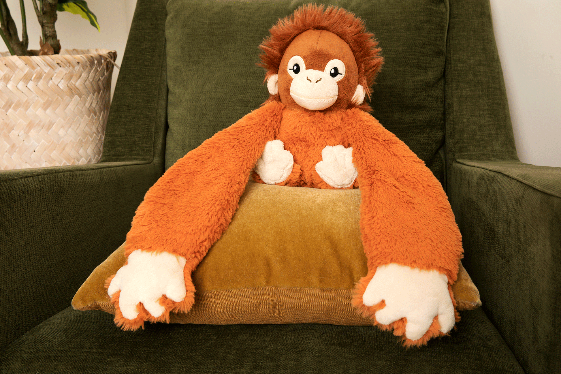 היי! אני אוֹלי, תינוק אורנגאוטן סקרן ועליז ממשפחת ה-Hugaround. אני אוהב לטפס, להתנדנד ולהצחיק. החיבוקים שלי גדולים, חמים ומלאי שמחה — כמו קרן שמש שמוקדשת רק לכם!